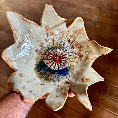 Rob's pottery is a beautiful blend of artistry and craftsmanship. Each piece is unique, combining texture variations with rich glazes that capture the essence of nature ....with a touch of whimsy!