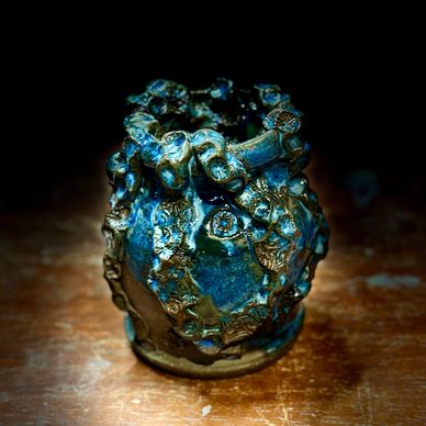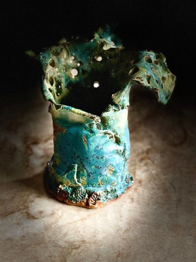 Each piece is created with great care, bringing out unique qualities within the clay. The texture, shapes, swirls and colors are all artfully combined. Truly special pottery works.